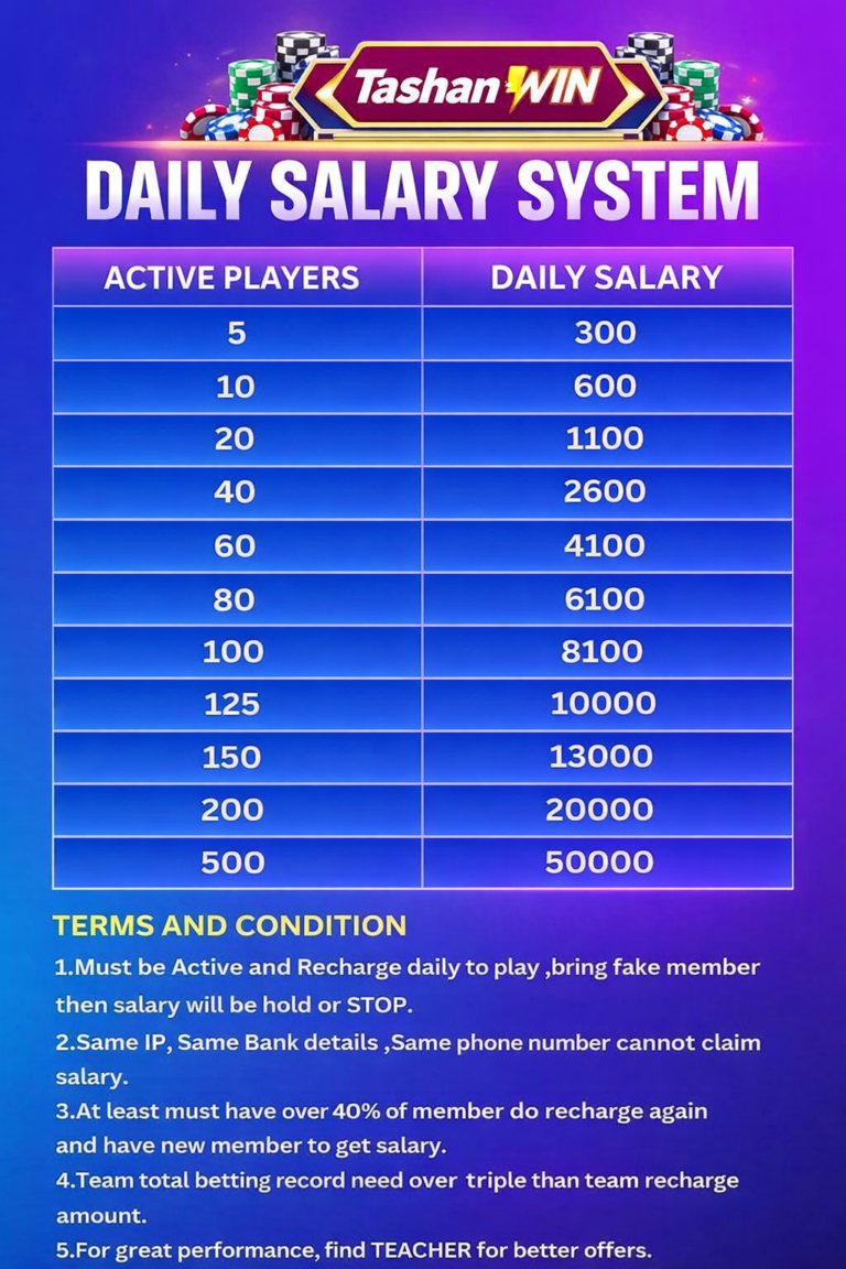 This earning chart is simple to follow. You can begin with just 5 active players and earn around 300, and as your network grows to 500 or more active players, your earnings can increase up to 50,000. Before becoming part of the Tashan Win Games agency program, make sure to carefully review and understand all the terms and conditions.